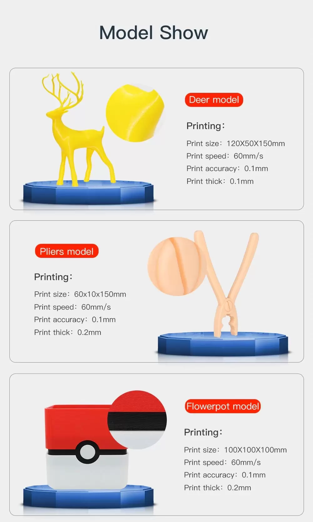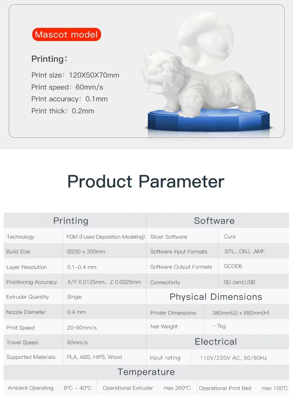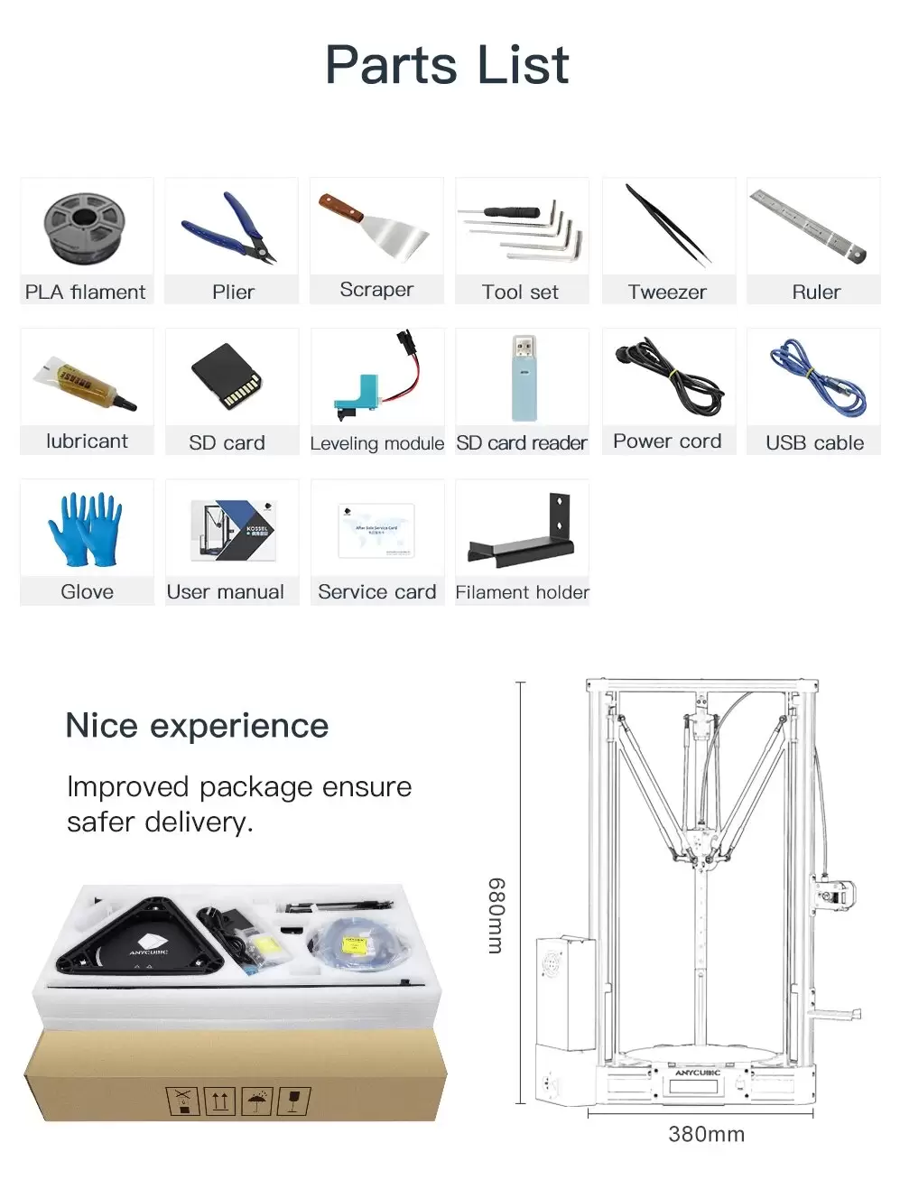 | Printer Dimensions | 380mm (Δ) × 680mm (Height) |