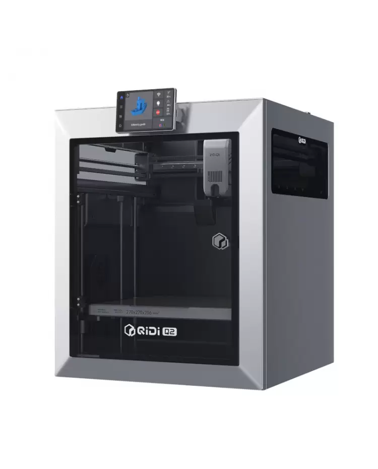 The QIDI Q2 is a compact, enclosed CoreXY FDM printer designed to make pro-grade features accessible to beginners and hobbyists. It delivers fast, reliable prints with a 270 × 270 × 256 mm build volume, hands-free auto leveling (nozzle-as-sensor, true zero offset), and a second-generation actively heated chamber up to 65 °C for stronger parts in ABS, PC, and fiber-reinforced filaments. A next-gen hotend reaches ≤ 370 °C, while 3-in-1 air filtration and MET certification support safer home use. Optional QIDI Box adds multi-color/material capability (up to 16 colors with four boxes chained).