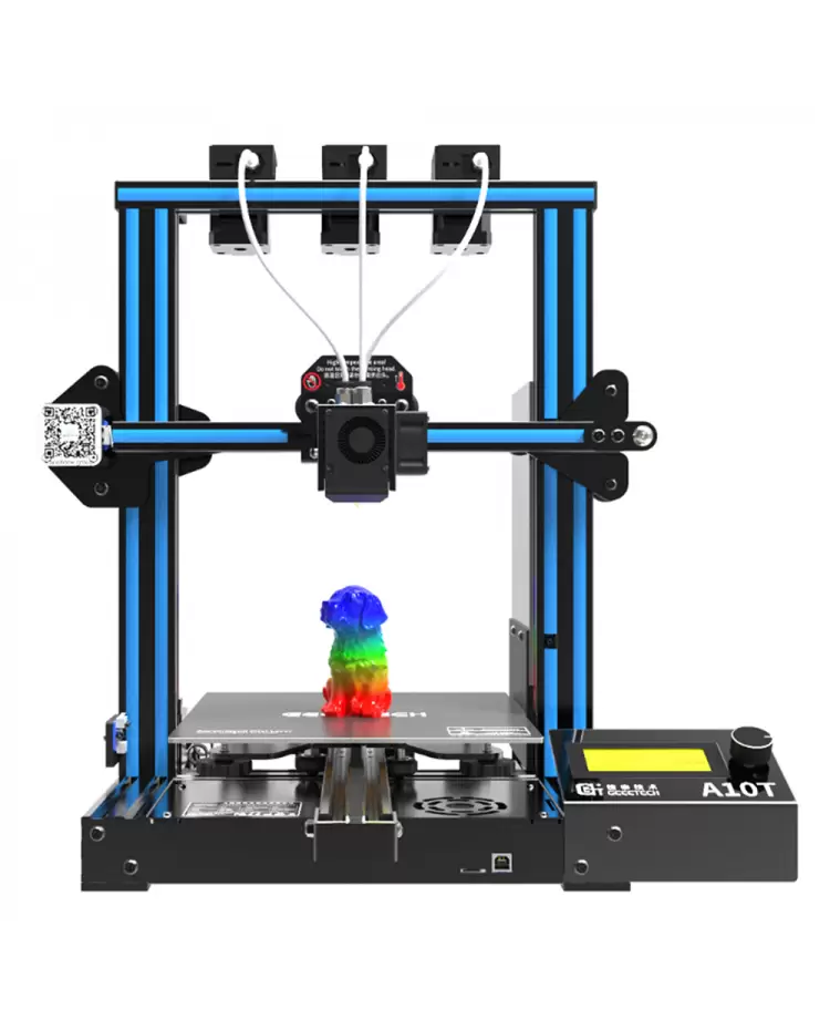 Geeetech A10T 3D printer, adopting open source GT2560 control board, delivers mix-color objects and greatly enriches your 3D printing life. Keeping the good performance of Geeetech 3D printers, it aims to provide users with quality printout and satisfactory printing experience.