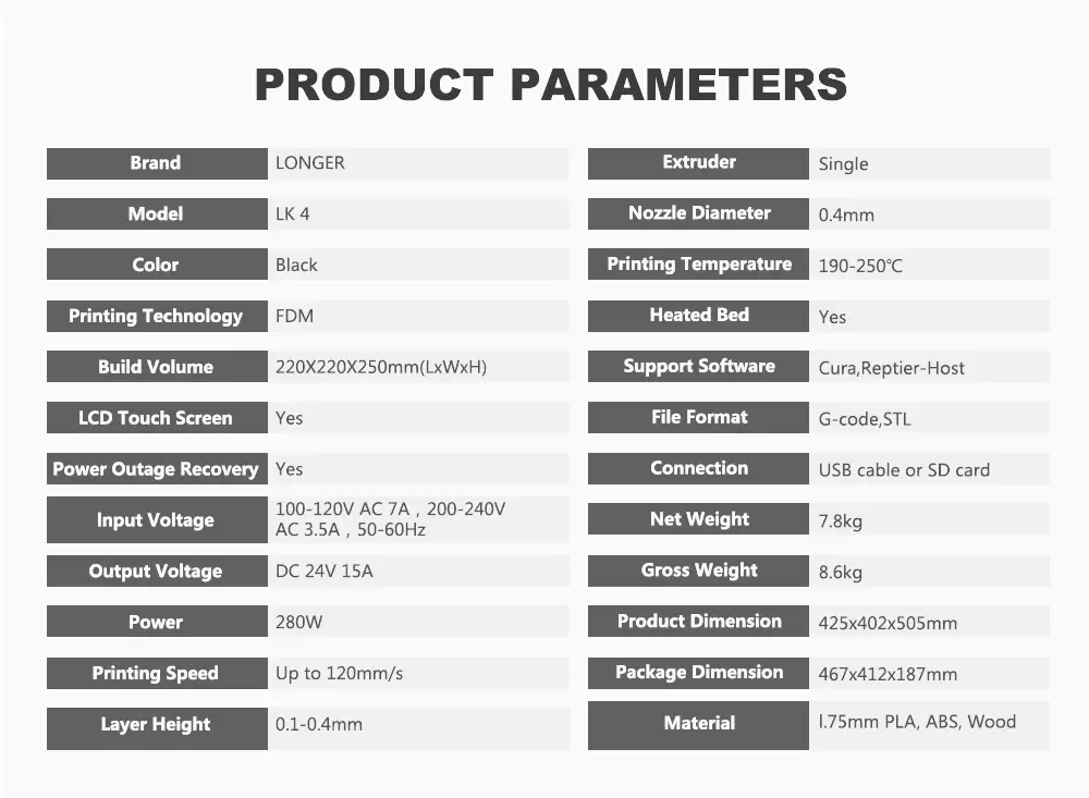 - Longer LK4 spots a sturdy aluminum frame with firm footing, that minimize potential Z-wobble.